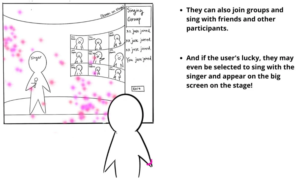Trying to build more interactions between users, including both singer and the audience. The most exciting part is the interaction with the surroundings in live concerts, so we should consider that the audience's reaction also acts as an incentive and positive feedback for the singer. We should focus more on this in the future.
