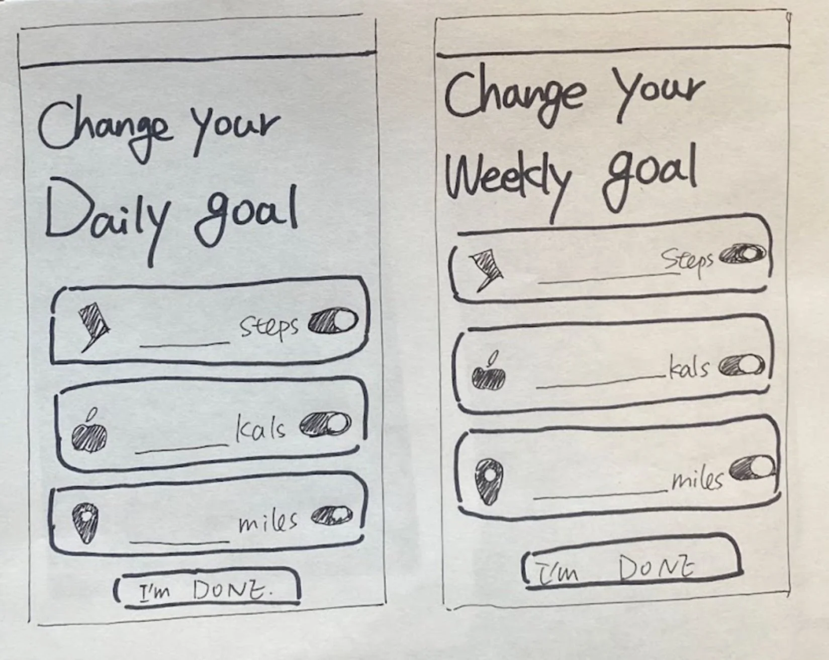 In accordance with the testing insights, we redesigned the application home screen (changing a couple of signifiers and switching the positions of the ‘Motivation’ and the ‘Go’ buttons). For the Daily/Weekly Goals, we replaced the button in the selection section with the toggle button, so that users can more clearly realize that not all options must be selected.